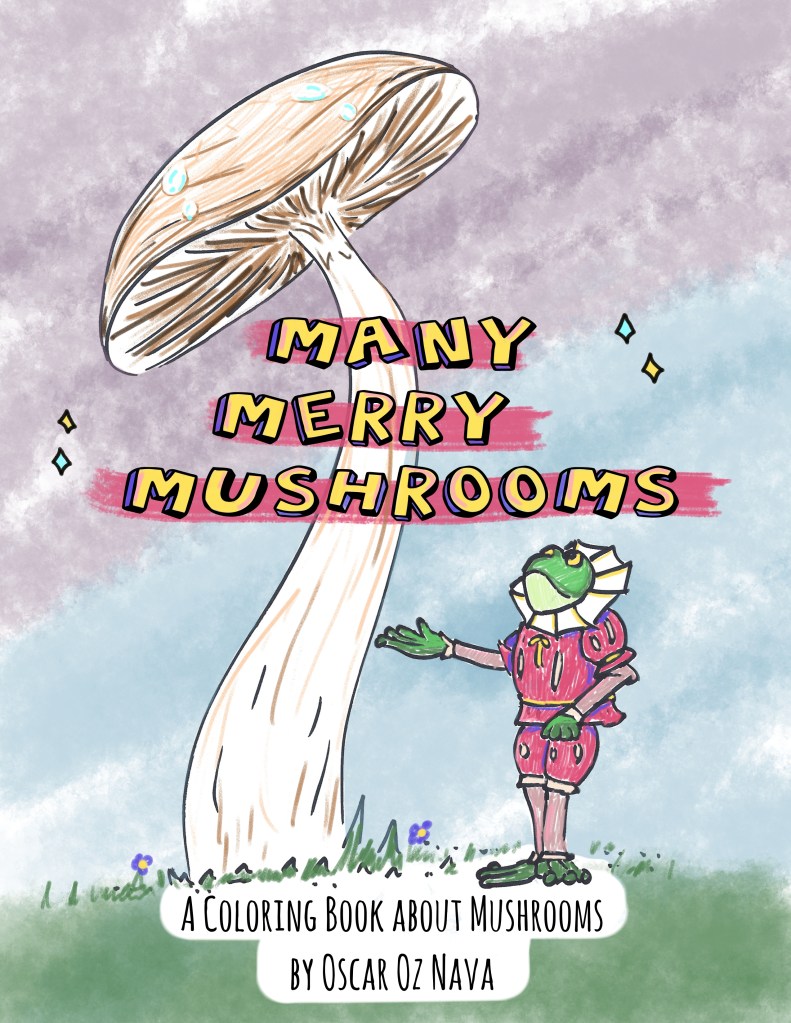 My latest coloring book, Many Merry Mushrooms, will be available at BarnesandNoble.com starting July 12th, 2024! Many Merry Mushrooms features 27 original, hand drawn pages filled with scenes of playful and delightful mushrooms for all ages. With this book being up for preorder now, I figured I’d mark the occasion by sharing the start of my journey in cultivating these various fungi. Read on for more details about the origin of this book, and order now!