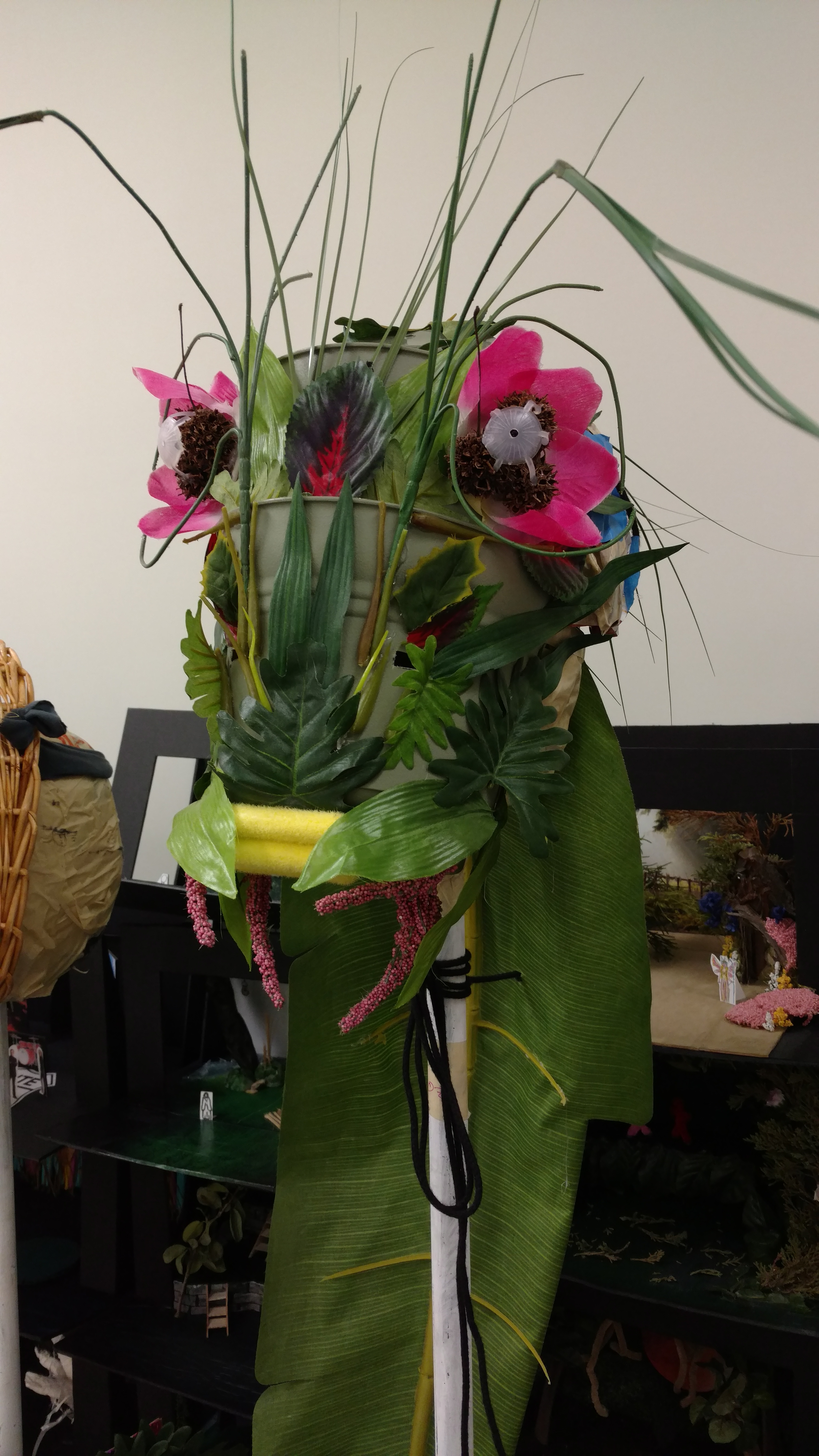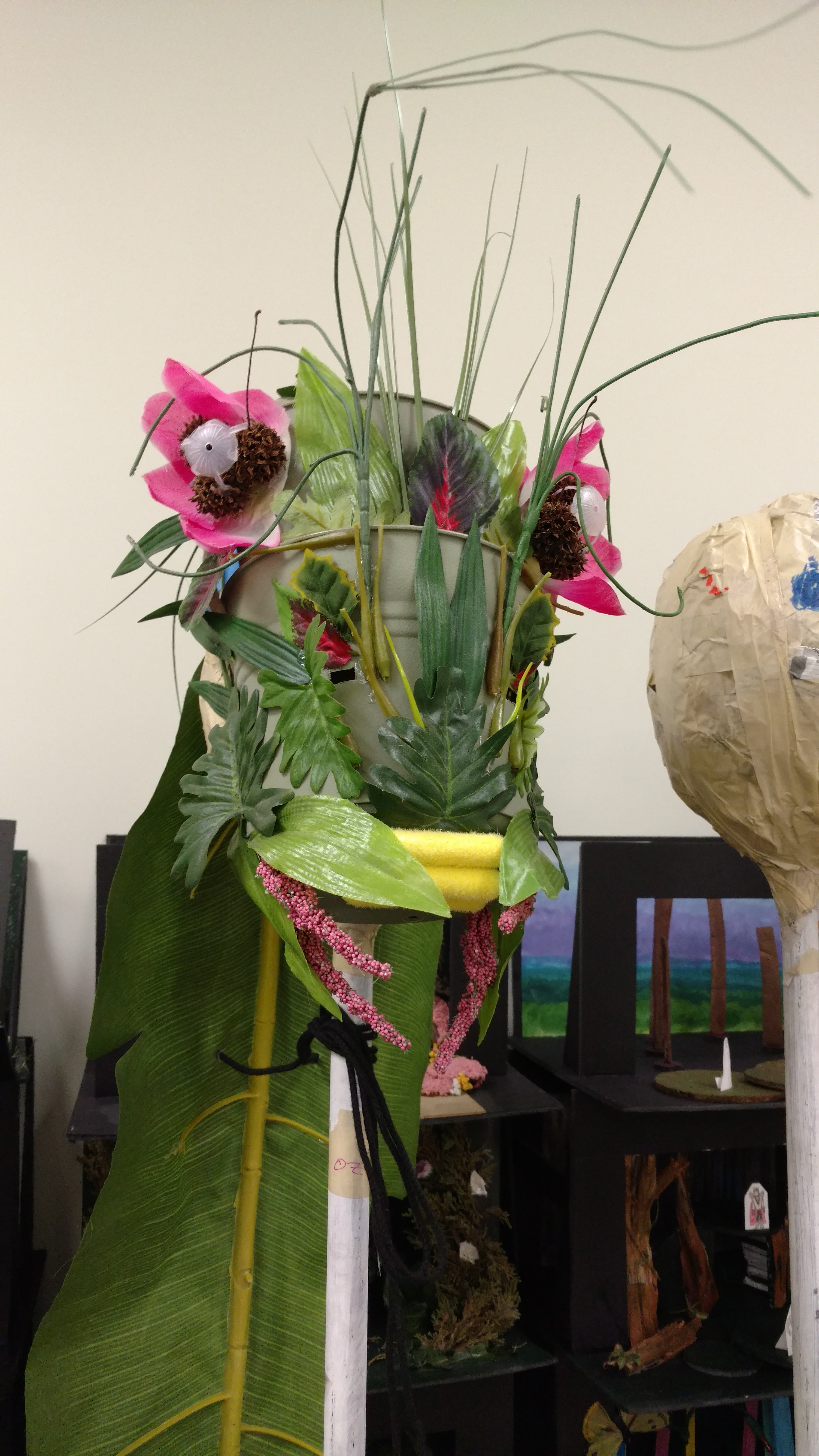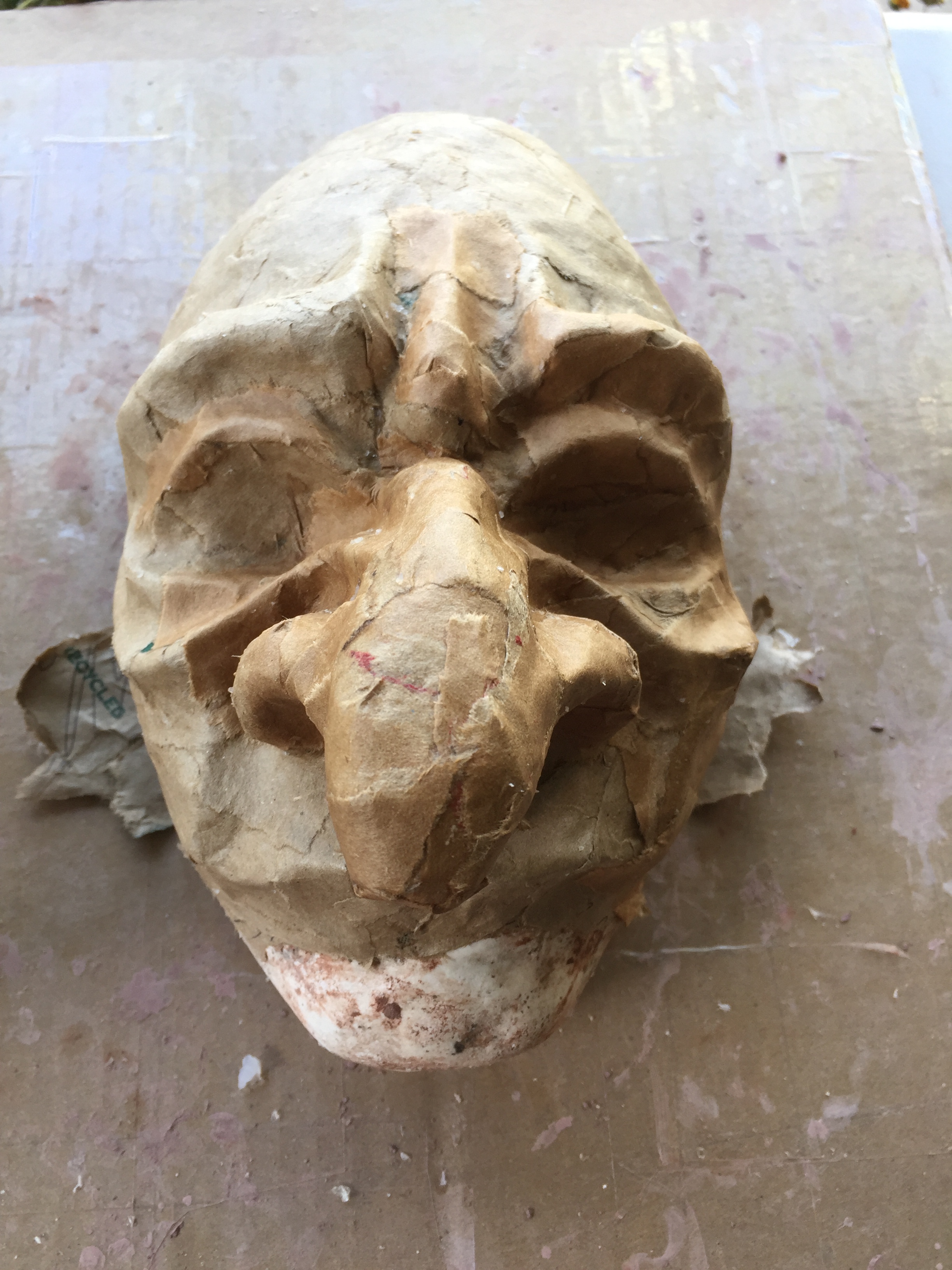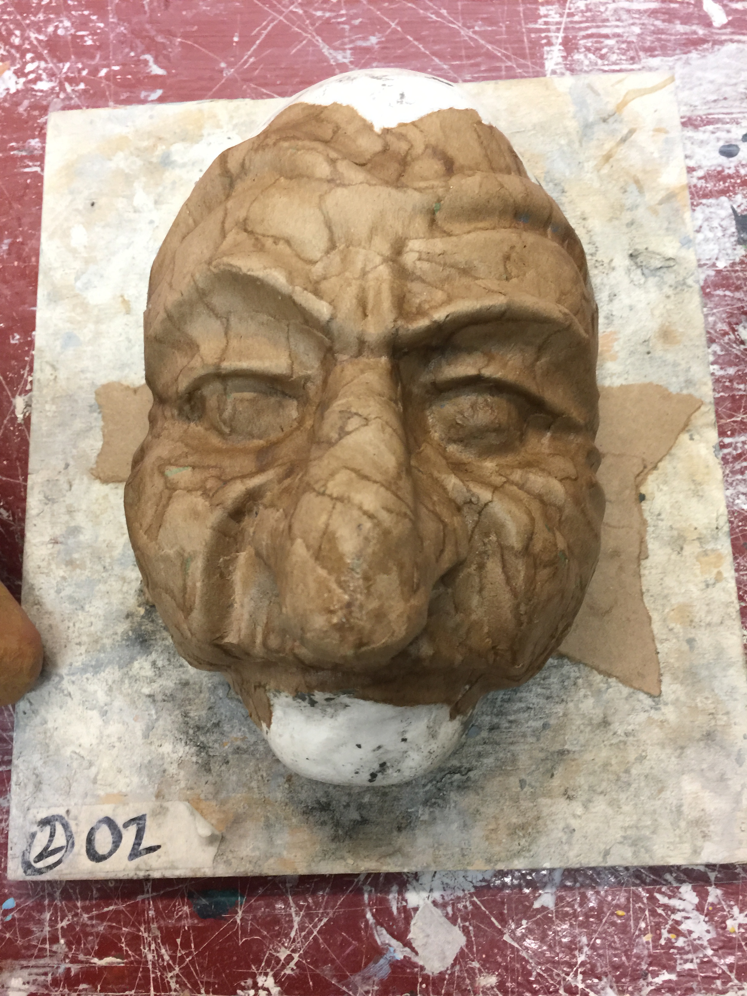 These character masks are paper mache finished with acrylic paint. Based on traditional Italian Commedia del’Arte stock characters.